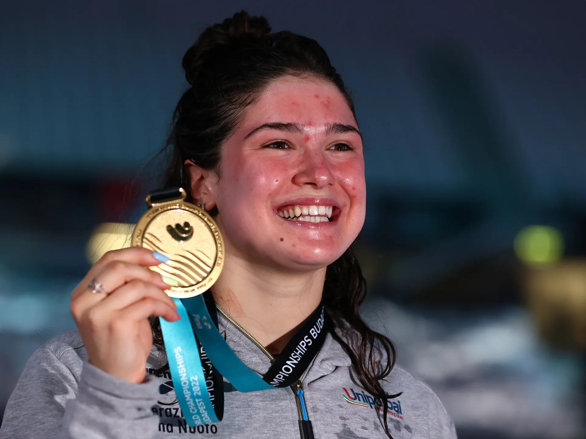 وتعد بيلاتو (20 عاما) صاحبة رقم قياسي عالمي سابق في سباق 50 مترا صدر للسيدات، وفازت بميدالية برونزية في بطولة العالم التي أقيمت في سنغافورة في الثالث من أغسطس/آب.