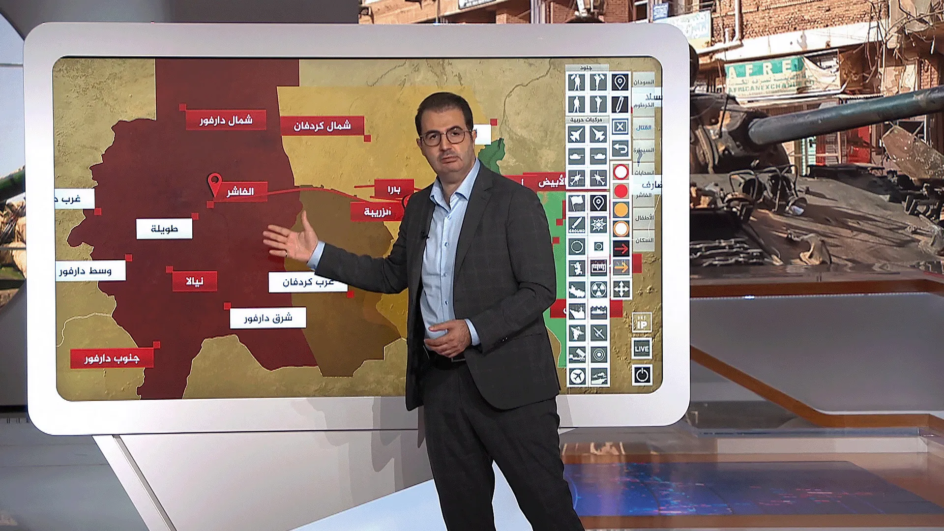 عبر الخريطة التفاعلية تفاصيل الوضع الميداني والعسكري في الفاشر بعد استيلاء قوات الدعم السريع عليها.